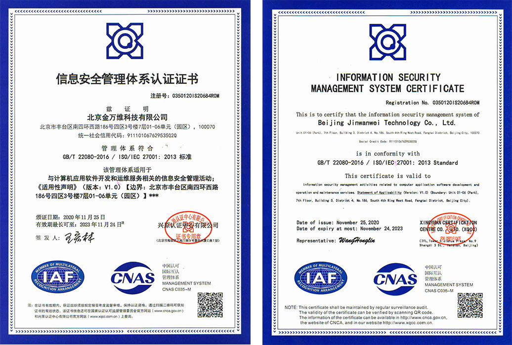 ISO/IEC 27001 信息安全管理体系认证证书