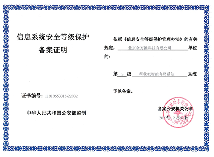 信息系统安全等级保护备案证明