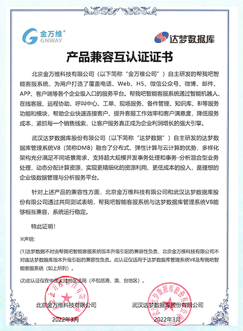 产品兼容互认证证书
